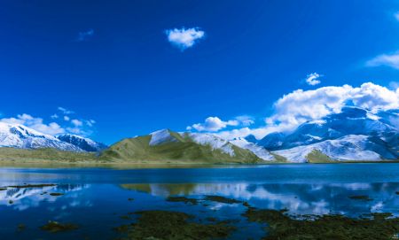 抵达白沙湖游玩(游玩40分钟)体表面附着的白沙经过了数万年风化,在帕米尔高原洁静的阳光下,闪耀着金属般的光泽。湖水在天空、白沙和雪山的综合作用下呈现出一种别样的蓝,深邃的蓝,非常迷人。前往慕士塔格峰的山脚下的高山明珠卡拉库里湖(行车约0.5小时)