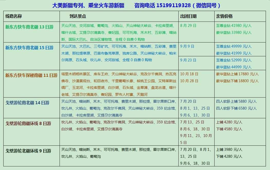 火车专列价格表