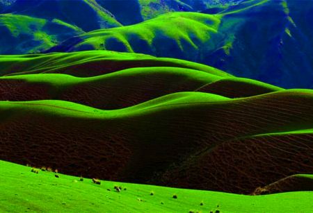 珠散落在绿色的地毯上,一派塞外草原的好风光;