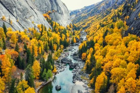 禾木村是个被白桦树、雪山和河流包围的美丽村庄,风景独特优美。禾木河自东北向西南流淌,原始村落与大草原和谐自然的融为一体。